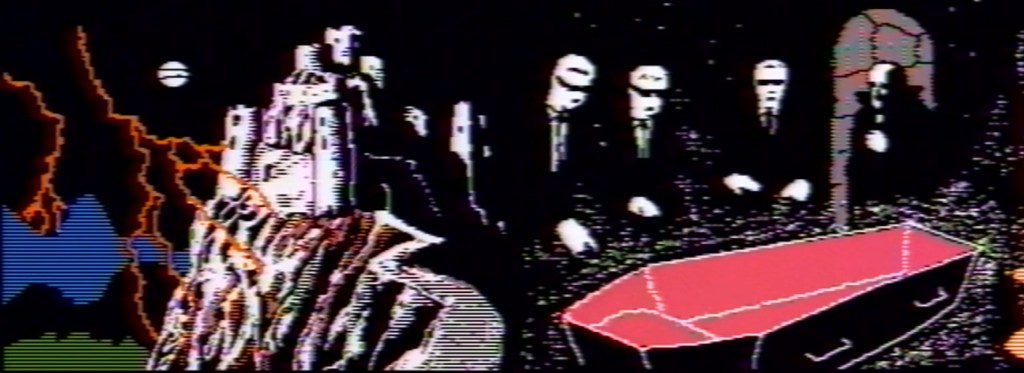 Le immagini psichedeliche tecno-retro, che ricoprono le pareti della sala immersiva sotto forma di proiezioni, mi hanno fatta sentire come se fossi all’interno di un tempio in attesa di qualche misterioso rituale di riprogrammazione, o forse all’interno di un computer contagiato da un virus.
